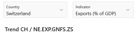 - on page load: the title displays internal values such as CH and NE.EXP.GNFS.ZS instead of labels Switzerland and Exports (% of GDP)