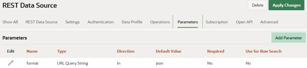 Once configured, the REST Data Source can be consumed directly by Oracle APEX components.